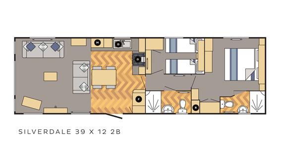 The 2026 Carnaby Silverdale 39ft x12ft is a stunning 2-bedroom holiday home that also has sustainability and the environment at heart. It combines modern design with eco-friendly features and is finished in green aluminium cladding, complemented by anthracite double glazing. It is a home that is both stylish and sustainable.